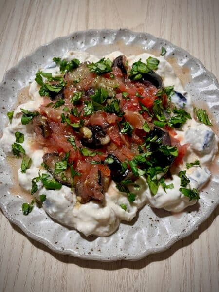 Fried aubergine m’tabbal with tomato & coriander salsa (M’tabbal Bitinjan Makli) – Gigi Anabelle