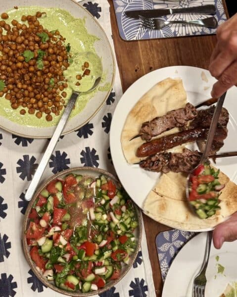 Smoky Chickpeas with Coriander Tahini, p88 and Chopped Salad for Every Occasion, p80 from Boustany – Carolyn Miles